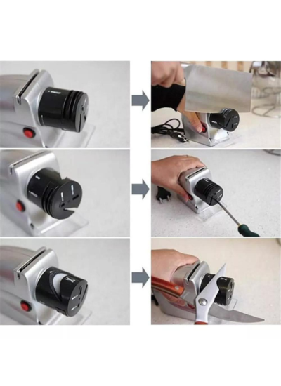 Nuestro afilador electrónico de cocina, cuchillo multiusos, tijeras y destornillador de punta plana. Este sacapuntas multifunción ahorra espacio en la cocina. Este afilador aporta fluidez y nueva vida a sus cuchillas, destornilladores de metal y hojas de tijeras.